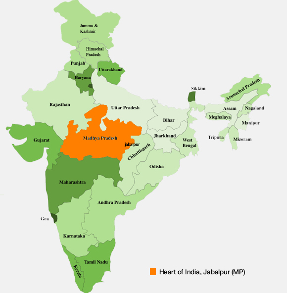- Located in Jabalpur, Madhya Pradesh, absolute center of India.